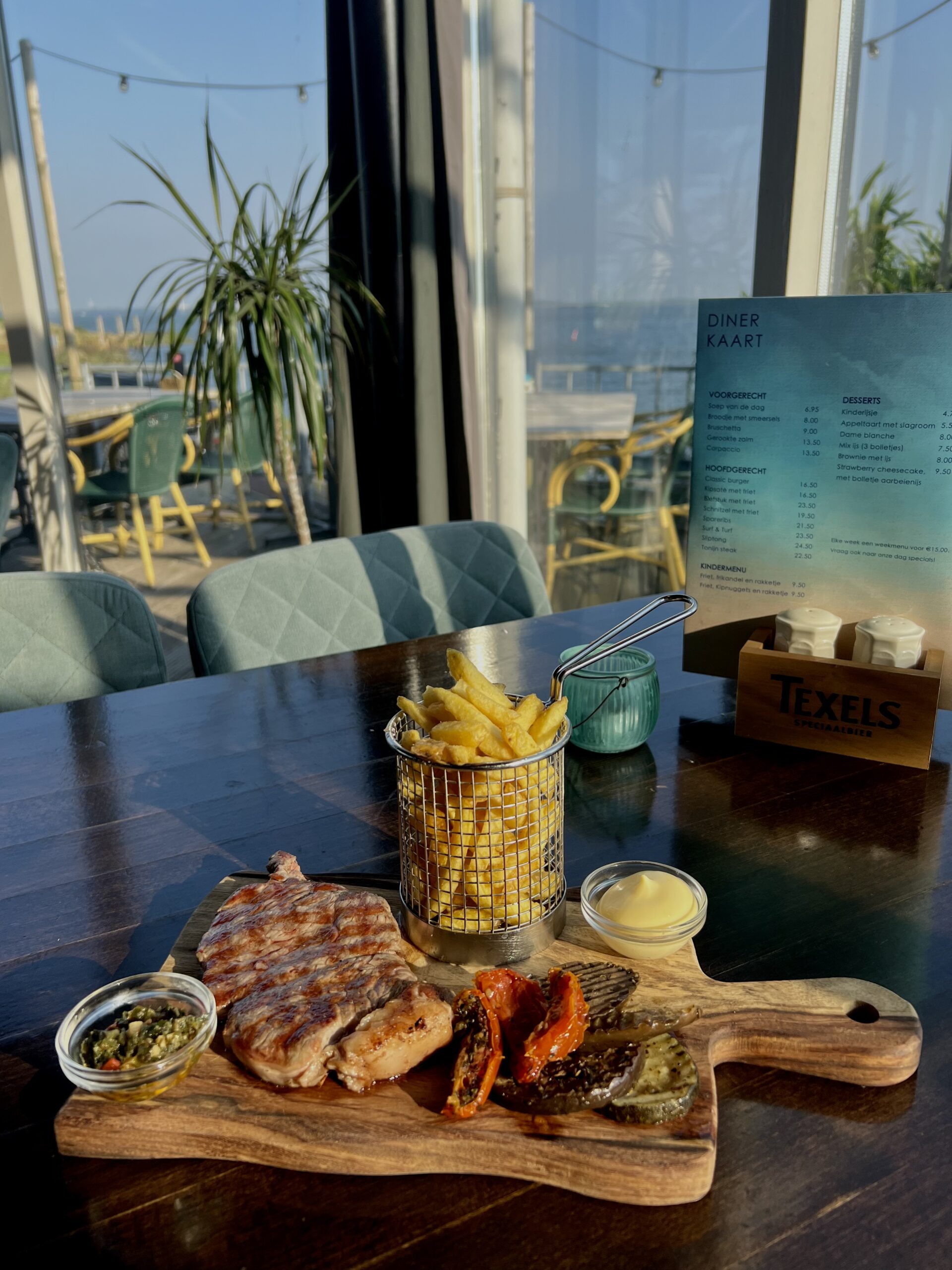 Verassende wisselende gerechten op ons 3-gangen keuze menu. Maak kennis met lokale gerechten, zoals biefstuk van Flakkeese koeien!
